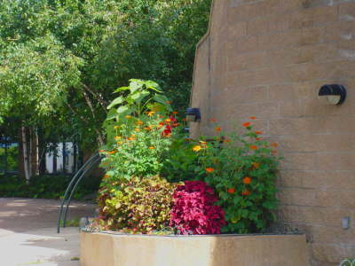 | n | Exterior Plantings and Maintence. We install outdoor planters and keep them looking great year round. In the spring we plant annuals and keep them flowering until fall when we plant hardy mums and kale. When the first frost hits, we fill the planters with fresh cut evergreen boughs which stay green all winter long. |